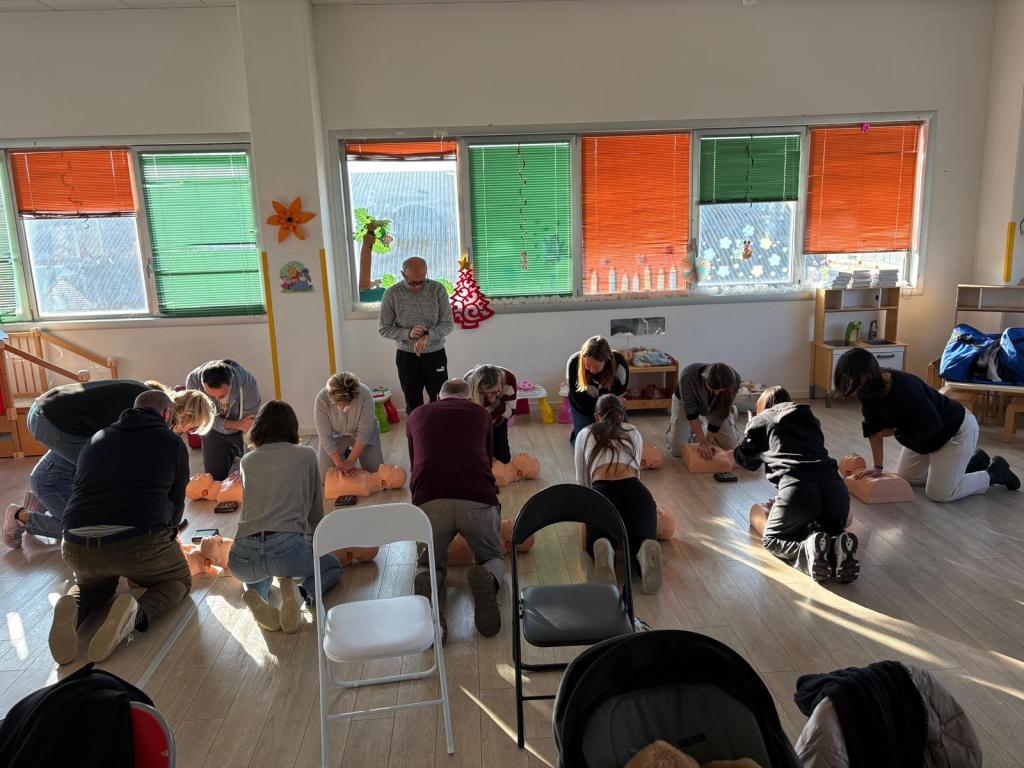 Il corso ha avuto un taglio fortemente pratico: ogni partecipante ha avuto a disposizione un manichino dedicato su cui esercitarsi, potendo ripetere più volte le manovre sotto la guida degli istruttori. In questo modo le nozioni teoriche sul primo soccorso pediatrico sono state immediatamente tradotte in esperienza concreta, aumentando la sicurezza dei corsisti nel riconoscere i segnali di pericolo e nell’eseguire correttamente i gesti salvavita.